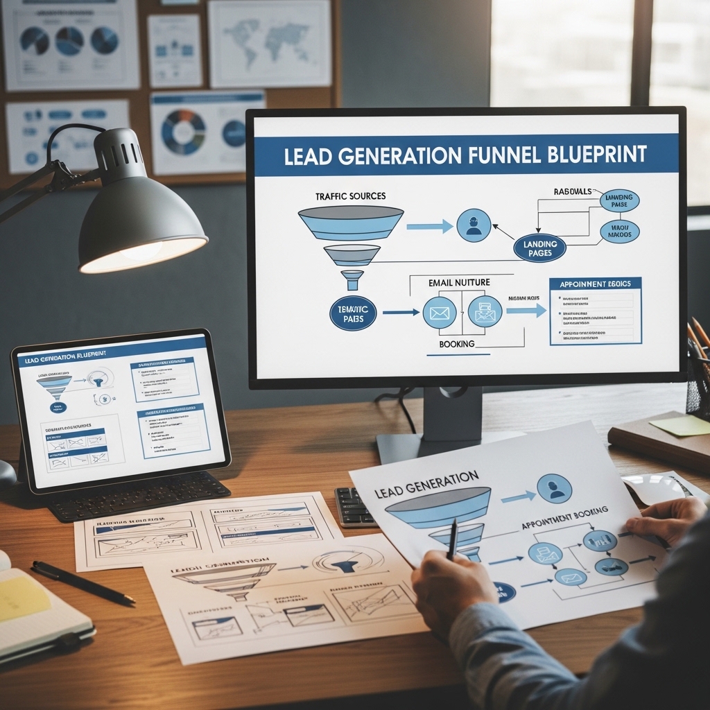 A complete digital blueprint for building high-converting lead generation funnels from first touchpoint to qualified appointment. Covers traffic source selection strategies, landing page wireframe templates, lead magnet positioning frameworks, email nurture sequence outlines, retargeting audience structures, and conversion tracking setup guides. Each stage includes copy prompts, design best practices, and metric benchmarks so you know exactly what good performance looks like at every step. Designed for digital marketing agencies, consultants, and in-house marketing teams who need a proven, repeatable system for turning cold traffic into warm leads ready for sales conversations.